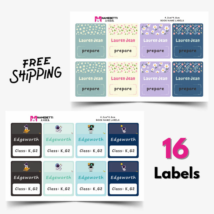 🌻 2 sheet - 8 Book Sticky Name Labels: 8.5cmX2.2cm (3.34"X0.86")