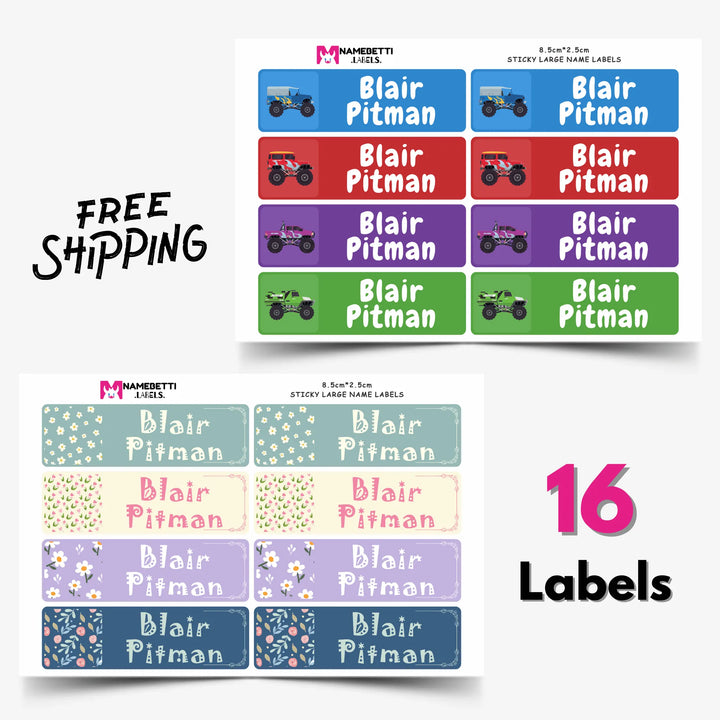 🌻 2 sheets - 8 Large Sticky Name Labels: 8.5cmX2.5cm (3.34"X0.98")