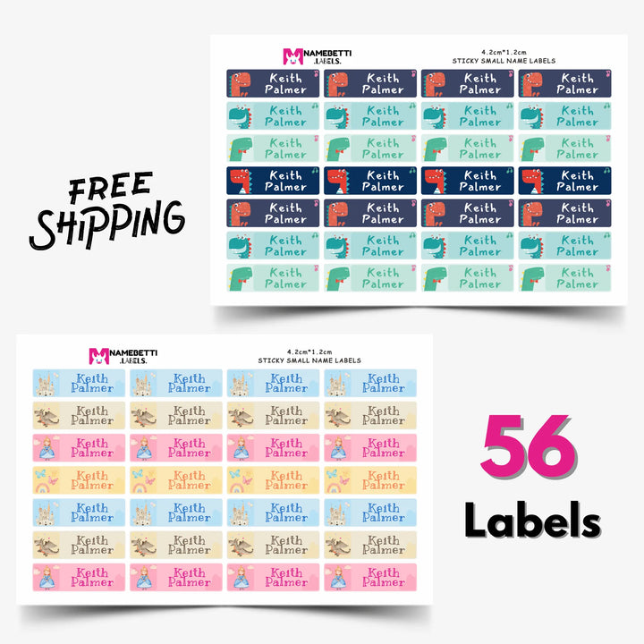 The NameBetti Small Sticky Name Labels contains 56 name labels including: